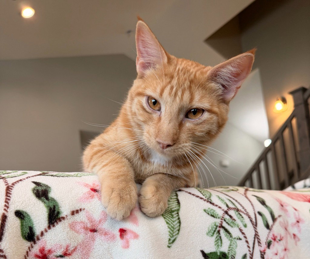 Juni and his siblings were found in a feral colony a few months ago, and he is still learning to feel safe and comfortable with people. He will thrive with an adopter who is patient and willing to continue working with him as he builds confidence. Once Juni warms up, he isn’t shy about using his voice—especially when it’s time to eat or when he’s asking for a good cheek scratch. Each day, his sweet personality shines through a little more. Juni will need to be adopted into a home with another cat to bond with. Because he is still on the shy side, he would do best in a home with older children or in a quieter, no-children environment. If you are interested in adopting a CAWS pet, please fill out an online application at https://caws.org/adoption-application