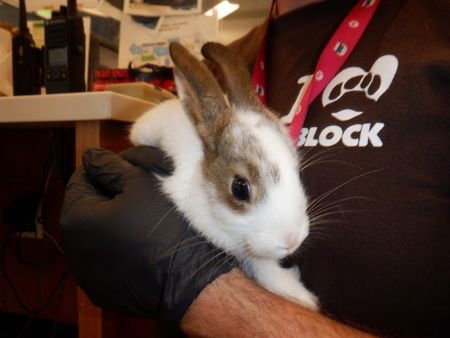 Juno is the sibling of Venus. She was abandoned in San Jose and came into the Haven extremely underweight. She is very hungry and now eats unlimited alfalfa hay, unlimited rabbit pellets and fresh greens. She uses a food and water dish and a litter box. Loves to play -She is a bit cautious but melts in your arms when held. Darling little girl will appreciate lots of attention. Best for a home with no predator animals –