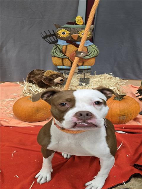 Karma is an outgoing, high energy girl who enjoys playing with people and has been known to bop humans with her toys from time to time. She is very people oriented, but still needs help channeling her excitement and will need the support of her humans to tackle the fun challenge of positive reinforcement training.OTHER PETS: Karma has a very active prey drive, she should not live with small dogs or cats. She can be pushy with other dogs so she should meet any dog she may be living with to ensure a good match.[Case-By-Case *NO SMALL DOGS NO CATS* (Must Meet First)] OWNER EXPERIENCE: Someone who has experience with athletic, high energy dogs would be a good fit for Karma.[Some Experience] KIDS: Karma is jumpy, sometimes muzzle punches (booping with her nose), and is uncomfortable with some handling. Karma’s best fit would be in a home with adults and older teens only. [15+ (Must Meet First)]ACTIVITY LEVEL: Karma has a lot of energy and will need appropriate ways to channel it to ensure she does not amuse herself at her owner’s belongings expense. Multiple or longer daily walks would be a great idea, and supervised outdoor playtime will give Karma the chance to roll around and be a goofy wiggle butt. [Olympic Athlete]VETERINARY CARE: [Routine] LEVEL OF TRAINING NEEDED: Positive reinforcement training will help Karma bond with her new owner as well as help her learn important skills. Karma may be able to work on reducing her prey drive if her owner seeks the assistance of a qualified Veterinary Behavorist, however to keep animals safe Karma should not have access to small dogs or other animals. [Moderate] GROOMING: [Minimal]