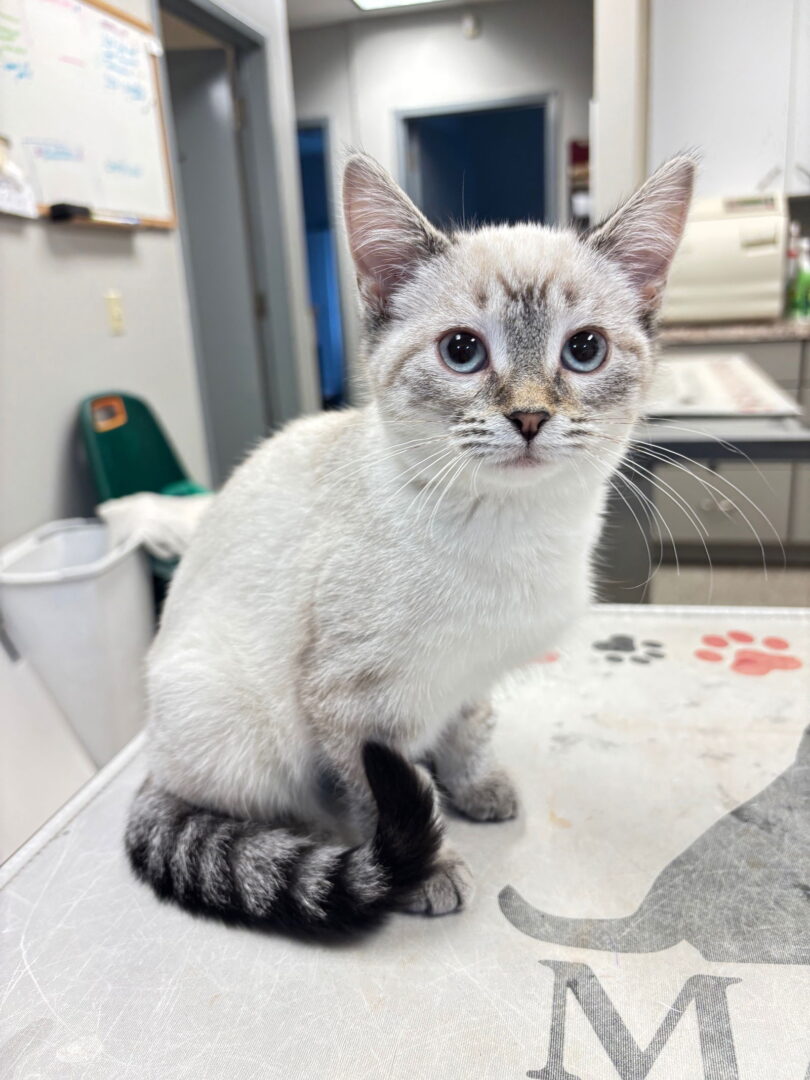 Kendal Snow is a beautiful lilac point! She has more of a calm personality. She is friendly with people and is currently in a foster home with our other kitten, Ralph Clawford. We believe her to be about 11 weeks old as of the week of November 11. The $125.00 adoption fee ( payable by cash or check only ) includes: spay/neuter; vaccinations; microchip; fecal testing w/ giardia, flea prevention, and FIV/FeLV testing. Our adoption application may be found by going to: www.headinhomerescue.org; then click on the link to the adoption application. Cats for adoption may be seen by appointment only following an approved application. Please note: while we welcome out of state applications, we do not ship our animals and require adopters to come to Holland to finalize any adoption.