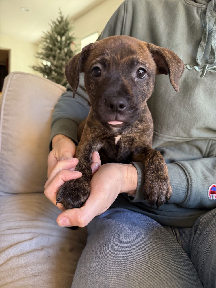 This little star is Kennedy!At just 9.5 weeks old, this brindle boxer mix is playful, affectionate, and already winning hearts. With her curious nature, bouncy puppy spirit, and gentle sweetness, Kennedy is the kind of pup who makes every moment better. Interested in adopting this pet? Please contact us at questions@awishforanimals.org for more info.