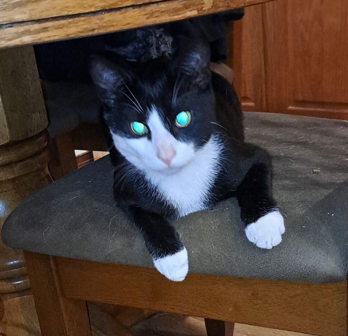 Hi! My name is Kermit (tux) and, my sister is Mitzy (FCID# 05/16/2024 – 63). We lived with our foster family and foster kitty sibs, which we like. We also lived with the resident dogs that we are not too crazy about. We love to play and to explore all of the spaces in the house where we can hide. Occasionally, we will sneak onto the bed at night where we will sleep with our foster mom and dad and sometimes one of the resident cats, Smokey. We are a bit cautious around new people but will warm up once we feel safe. We love cuddles and pets, and Mitzy will roll onto her back for belly rubs. We will follow you around the house and will come when you call us as we know our names. When our foster mom met us, we were very scared. She gave us SO much love, and now we feel that we can return that love if someone adopts us works with us and has patience. We are looking for that love in our forever home. Please consider adopting us! We are now playing in our Brandywine PetSmart adoption center while awaiting your visit. Please ask to meet us! Love, Kermit. The sibs do not have to be adopted together. Please submit our no-obligation adoption application: https://forgottencats.org/adoption-application/. Thank you! (Foster: Annette U.)