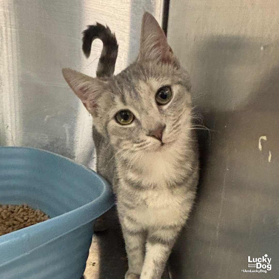 Please contact Jessie Cheng (jessie.cheng@luckydoganimalrescue.org) for more information about this pet.Sweet baby girl in search of her forever home!KIM LEE NEEDS A FOREVER HOME! COME MEET KIM LEE AND OTHER GREAT ADOPTABLE CATS ON SUNDAY 12/7 FROM 12PM-3PM AT THE PETSMART IN POTOMAC YARDS (3351 RICHMOND HIGHWAY, ALEXANDRIA, VA)! Name: Kim Lee Best Guess for Breed: Domestic Short Hair Age: 7 months as of 12/5/25 Estimated DOB: 4/16/25 SEX: Female (spayed) Approximate Weight: 4lb 10oz Coloring: Gray Tabby Type of Hair: ShortGets Along With: Because of her young age, Kim Lee will likely get along with other cats, dogs and kids with an acclimation period. We’re happy to help with tips and tricks! Currently Living at: Foster in the DC Area I am Looking For: My loving forever family! Hi! I’m Kim Lee, and I am a cute little kitten! I won’t ask for much- just some love, cuddles and lots of toys so I can run and play and be my kitten self. Two kittens are more fun than one – consider adopting one of my super cute siblings, too! What My Foster Says About Me: Coming soon! Kitten Vetting Requirements: Your kitten may not be fully vaccinated upon adoption. You will be responsible for providing whatever remaining vaccines are needed to complete the kitten vaccine series. TO ADOPT: The adoption fee for adult cats is $200 ($350 for two cats adopted together). The adoption fee for a kitten (under 7 months old) is $220 ($380 for two kittens adopted together).If you are interested in adopting, please complete the Adoption Questionnaire online at bit.ly/adoptaluckycat. Lucky Dog Animal Rescue does our best to provide accurate information about the cats we have for adoption. That said, we cannot make any guarantees about age, breed or temperament. Thank you for contacting Lucky Dog Animal Rescue and helping to save a life! Please visit us online at www.luckydoganimalrescue.org . BE A FOSTER!!! Fosters make it possible for Lucky Dog Animal Rescue to save and care for homeless and abandoned dogs! To learn about fostering, please contact fostering@luckydoganimalrescue.org BE A SPONSOR!!!! Sponsors help Lucky Dog support the many dogs we save. To learn more about sponsorship, please contact info@luckydoganimalrescue.org !