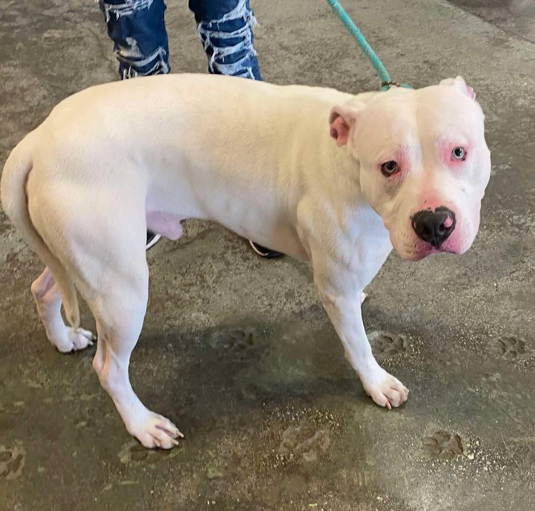 Hello, my name is King. I am an 18 month old Pitbull mix that weighs approx. 70-75lbs. I was surrendered to RAC due to my previous home no longer being able to care for me. I am a shy guy that will need a person or family that has the time and patience to help me be the best dog I can be. I am 110% a foodie! I will basically do anything for snacks and am a connoisseur of yummy treats. I do take a minute to warm up to new people but once I do, I consider them my newest best friend! I am leash and crate trained. I have done well with my litter mate but a meet and greet is required if you have another dog in the home. I would do best in an adult only home. My adoption fee is $125. I am neutered, microchipped, current on my rabies vaccination and basic boosters, and I am heartworm negative! All animals, unless otherwise noted in their description, are at 1825 Airport Rd. in Rockwall, TX. Hours of operation are Monday-Friday 9 am to 6 pm and Saturdays 9 am to 5 pm. For questions, please call 972-771-7750 ext. 2 or email info@RockwallAdoptions.com. IMPORTANT NOTICE: All shelter animals are required by Texas state law to be spayed/neutered. RAC completes this procedure at the age of 12 weeks. If you are adopting a pet under the age of 12 weeks or an animal that has not yet been spayed or neutered, you will be required to return the pet to our facility on the agreed upon date set at the time of adoption. This policy is non-negotiable and violation of this health code is a criminal offense.