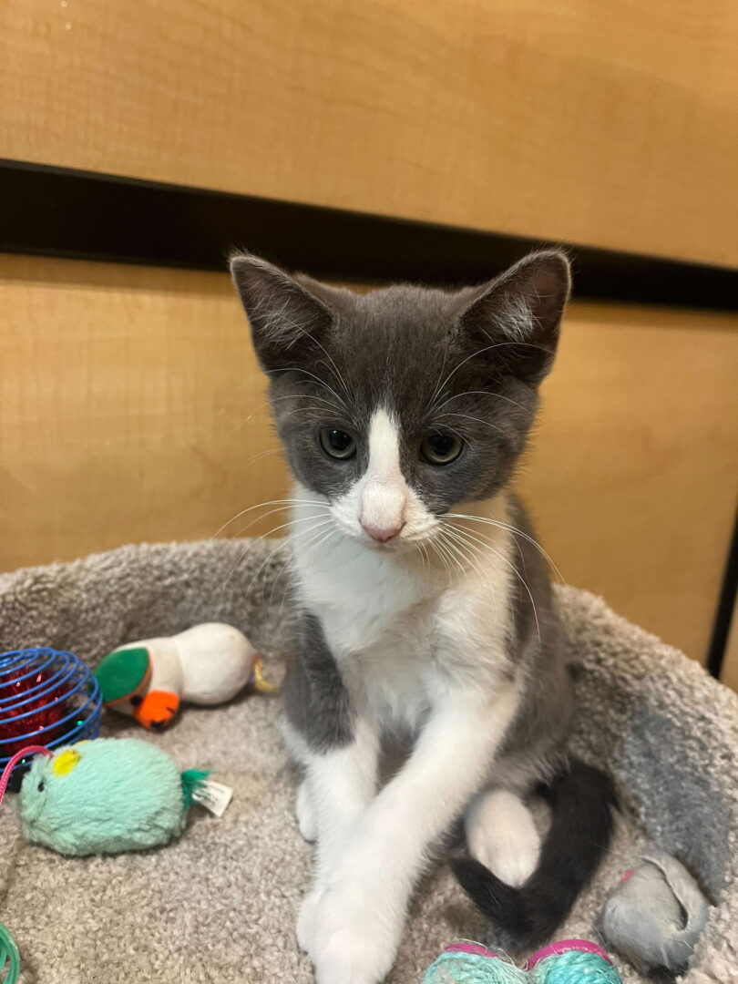 I am available for adoption at PetSmart Rowlett located at 5709 Liberty Grove Rd, Rowlett, TX 75089. For more information about me, please email cats@frastx.org.