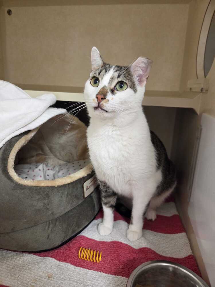 Birthdate: 04/12/2023Breed: One of a kind*** I'M PET OF THE WEEK!! ***Trying to claim a sense of quiet, meditative calm in your life? Meet our gentle boy, KITARO. Named for a prominent musician and composer known for New Age synthesized music characterized by simple melodies unfolding at unhurried tempos – this is how this cat makes us feel. Undemanding and naive, he is ever so sweetly responsive to touch. Expressive eyes seek connection and his patterned tabby on white coat could be a fashionable Burberry. Timid only briefly in new situations, we're told he's good with other cats and even small, social dogs. What we know for sure is how his sincere gratitude for every kind word and every touch makes us feel. With all the stress and chaos in today's world, come find your Zen moments – with Kitaro. The Rescue is open 7 days a week for you to come and meet our pets! Walk-ins are welcome! In order to interact with them, you’ll need a simple questionnaire filled out. You can fill this out at the Rescue or before you come in at: https://www.pawscrossedny.org/cat-adoption-questionnaire. If you have any questions, please email us at adoptions@pawscrossedny.org for more information. Please understand that we cannot hold pets for any reason. All adoptions are done on a first come, first adopt basis for pre-approved applicants.