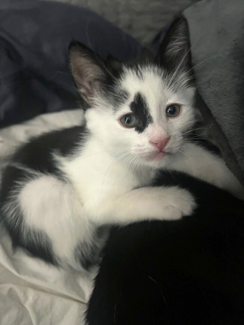 Hi, I’m Athena. My two sibs and I were born in our foster home. Our foster Mom had rescued our Mama from the street, so we were raised by our real Mama with help from our foster Mom. I’m a friendly, playful, and affectionate kitten who enjoys attention and pets. I am now ready for my forever home and would be extra happy if I could go with one of my sibs or another kitten or young cat. I’m with my brother, Apollo, in one pic and with my sister, Athena, in another.