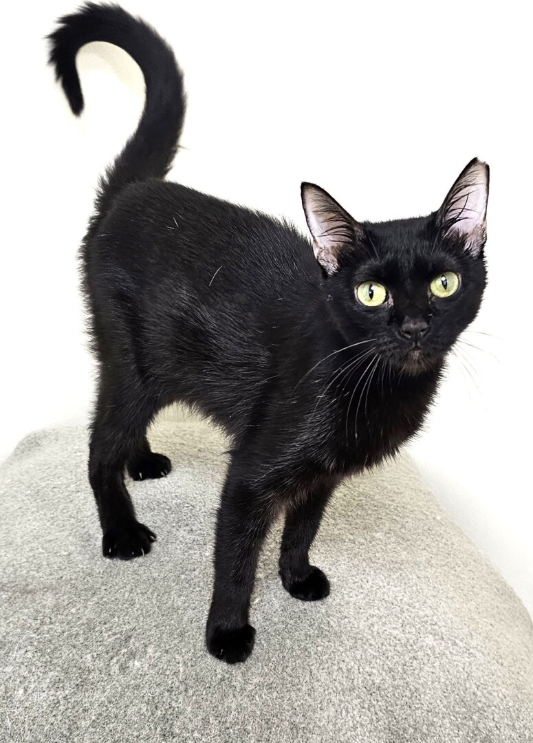 See Kiwi’s HomepageGo to our official website An approved adoption application is required to meet me in my foster home — fill out an application today! Our mailing address is Reston, VA and our cats fostered in NoVA and DC homes. Washington, D.C.- Suburban Virginia/Maryland Area inquiries only, please! This petite little girl has a huge personality! Kiwi is a laid-back, energetic house panther who endlessly entertains herself (and her foster mom!) by tossing balls in the air and then chasing them She loves to play with fishing pole toys and is an intrepid explorer! If you open a door or drawer, she will be there immediately to explore. With a huge personality herself, Kiwi does not need other cats in her life, though she is in a foster home with multiple cats and a laid-back senior dog and is fine co-existing with them. She would be happy in a home with lots to explore, tall cat trees, and a solid supply of toy balls and mice.