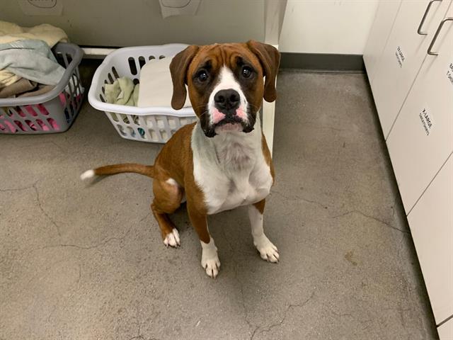 Meet Kleo, a beautiful boxer mix with a spirit to match. This girl is high-energy and fun – she loves to engage with and get attention from her human friends. Kleo also loves to get zoomies, both on and off the leash. Plus fetch is her game – she can’t get enough. Add to that the fact that Kleo loves to play with other dogs her own size, and you have the makings of a fantastic companion. Kleo may have a bit of a prey drive for smaller animals, so she will only want to play with evenly matched dogs. But that shouldn’t be too hard to find, with her enthusiasm and zest for life. She appears to be housetrained and is ready to meet you today!