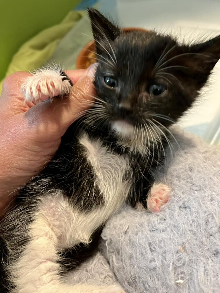 Please contact Jamie (jamiecr@comcast.net) for more information about this pet. Want to meet? [Fill out the Application], then email it to the contact in this bio. Littermates Elaine, Jerry, George, and Kramer Adopt Elaine, Jerry, George, and Kramer! Born around 2/26/26, these sweet siblings were rescued after being found crying next to a busy road. Elaine is a fluffy tortie, and the rest are fluffy tuxedo boys. Jerry has a classic tuxedo face, George has a white stripe on his nose, and Kramer has black fur with a white chin, white front, and white booties. All have soft medium length fur. The siblings have adapted well to indoor life and use the litterbox with perfect manners. They love people and will run right up to you for cuddles and pats. All are lap kittens. They wrestle and cuddle each other and will entertain you for hours and hours. Elaine, Jerry, George, and Kramer should be adopted in pairs. If you are interested in providing them with a loving forever home, contact sponsor Jamie at jamiecr@comcast.net and foster Nisha at nkchauhan@gmail.com. They are located in Contra Costa County, CA. Click here to watch a video of Kramer (adopt with Elaine, Jerry, or George).