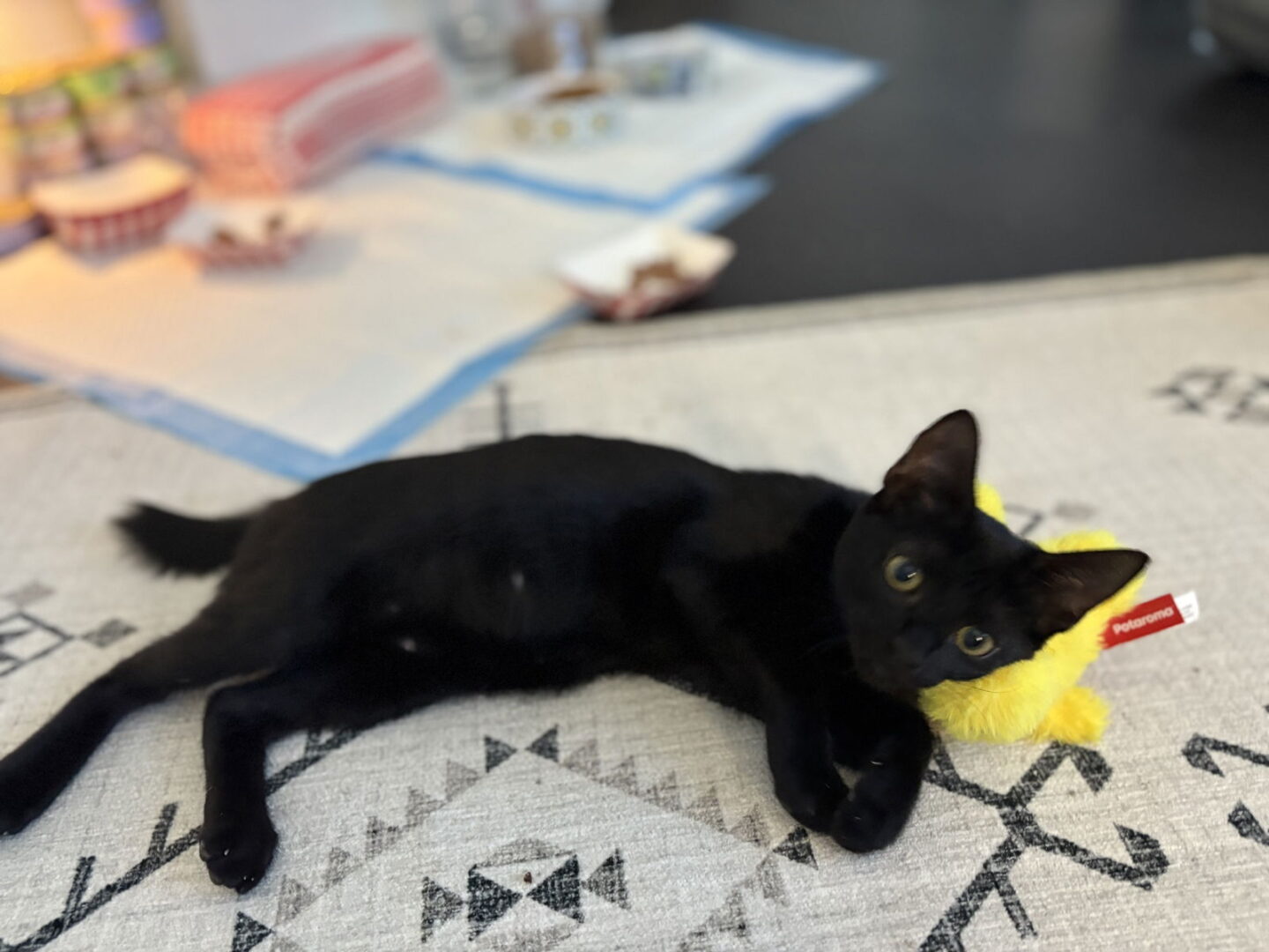 See Kristy’s HomepageGo to our official websiteYou can fill out an adoption application online on our official website.Has 3/4 tailKristy is a sweet silly girl with a 3/4 tail. She was born like this, she is special. She is an adventurous fun cat who carries around her toys and loves to play with other cats. The entire litter is affectionate toward people, she loves to crawl up on your lap and go to sleep. She head butts you all the time and is just as sweet as they come.The litter was rescued out of a barn in Green Acres, Fla. The owner did not want any kittens in there and a nice volunteer helped them. They have been raised in a loving home since they were 1 week old. So they love human contact and affection.