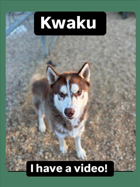 Kwaku is a beautiful boy with mesmerizing eyes. He did some spinning in his kennel and outside and seemed to have a slight balance issue. Hopefully, that will be addressed. He enjoyed smelling all the smells and getting treats. Kwaku loved to play and prance with a stuffy he found. Kwaku enjoyed getting some pets and offered a wagging tail to show his appreciation. If you can offer Kwaku a home where he can be loved and cared for, please come meet him today!