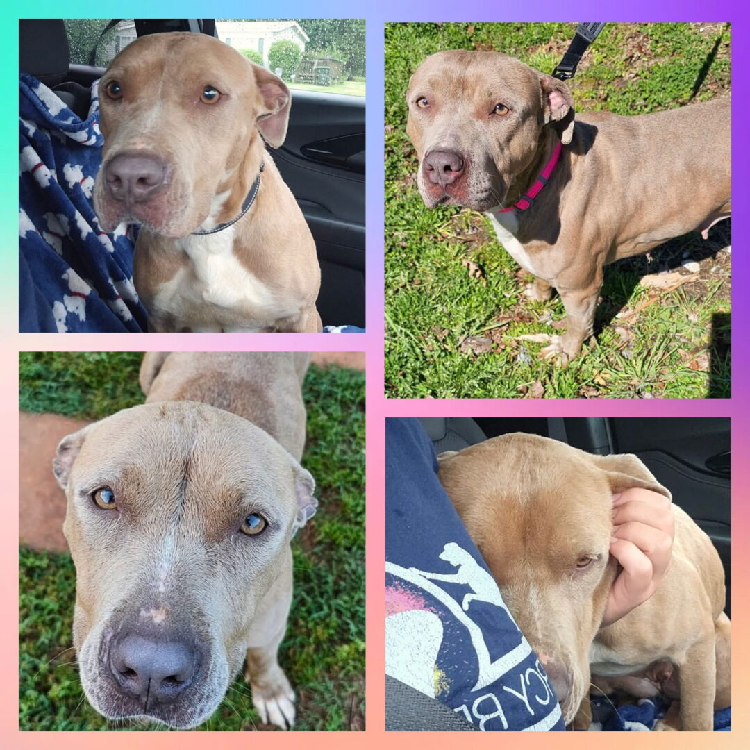 La La is a gentle and friendly soul who is full of love and affection for her human friends. She is loyal and curious and will show her unwavering loyalty and love through gentle nudges and sweet kisses. She loves going on walks and meeting new people and dogs. La La is very sociable and will greet everyone with a wagging tail and lots of enthusiasm. She is calm and collected and would love to enjoy the simple pleasures of life, like taking naps in the sun and going on gentle strolls. She would make the perfect companion for someone who is looking for a sweet and affectionate dog. Would you like to know more about La La? More about La La! Breed: pit bull/mix. Age: approx 2 year. Weight: approx 50lbs. Training: crate and leash trained. She is doing great with house training. Good with other dogs/cats? Yes to dogs. Will need to cat test. Good with adults/kids? Yes, she loves everyone! Personality: friendly, curious, and affectionate. Reason for rescue: surrendered to Animal control with her daughter. They were at risk of being euthanized. She is spayed, microchipped, and current on vaccinations and preventatives. She was heartworm positive but has been treated. If interested in adding this sweet baby to your family, please message for an adoption application! Adoption fee: $75.