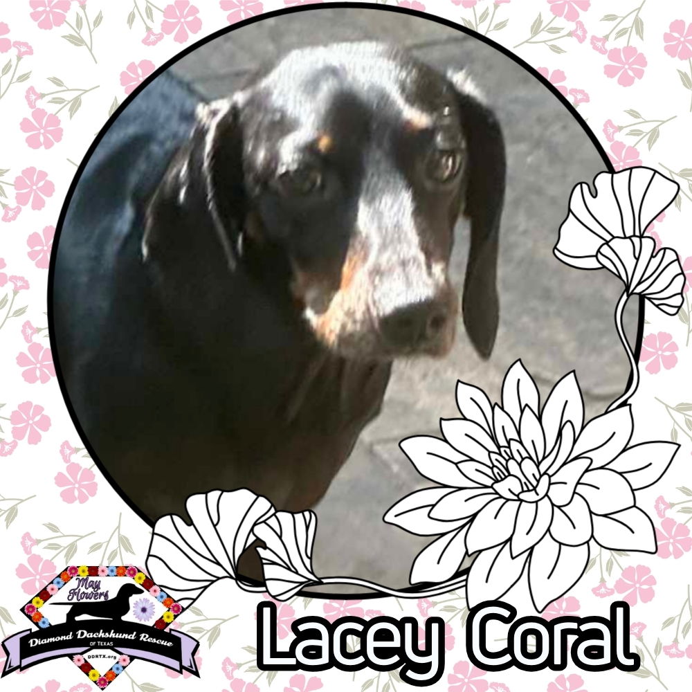 See Lacey Coral’s HomepageGo to our official websiteWelcome to the Wonderful World of Rescue Dachshunds. Look around and read their bios. Find a few whose personality seems to fit well. Consider one of our Well Seasoned Seniors who are truly wonderful and have so much to offer. Need help finding the best fit? We'll help with that too. Please fill out an application and let’s get you all matched up with a loving new “furever’ companion and friend. You’ll find the application on the “Available Dogs” page. NOTE: Adoptions to Central/South Texas residents only Please see FAQs for current adoption fees. DDRTX only adopts in Central/South Texas. Email: ddrtxinfo@gmail.com Primary Website: www.DDRTX.org Lacey Coral is a 7 year old female dachshund. She weighs 17 pounds but could probably stand to loose a little bit. Lacey is very playful and is getting along with the foster dogs in her foster home. She is still learning when dogs don't want to play that she needs to back off. She just loves playing. We were told that in her previous home, her best friend was a cat. She likes to sleep in the big bed with the foster Mom and is quiet all night. She doesn't like to be outside without a human. She is crate trained. She walks really well on a leash. She is sweet. Love dachshunds and not ready to adopt or circumstances won't permit having a dog? How about being a sponsor or making a donation. Every one of our dachshunds receives excellent medical care along with day to day food, love and housing. Being non-profit, we rely on generous individuals like yourselves to help save these fur babies. You can do this specifically for one dog with the sponsor button on their webpage or a general donation on our “How To Help” page. Easy and quick through Pay Pal or your debit/credit card. You generosity is sincerely appreciated by all and is tax deductable. Need other ideas? You'll find tons of them on the How to Help tab. All contributions are tax deductable. Diamond Dachshund Rescue of Texas is a non-profit 501(c)(3) volunteer organization with focus on rescue and adoption of pure breed Dachshunds. All dogs are fully vetted and housed on private property. Meetings are scheduled upon adoption approval. Thank you for your continued support to the rescue and shelter communities! Opt to Adopt!