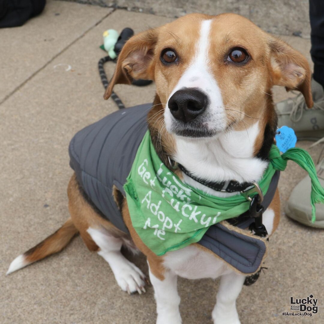 Please contact Diane Pedulla (dianep@luckydoganimalrescue.org) for more information about this pet.sweet little beagle ISO her humans!LADY CHELSEA NEEDS A FOREVER HOME!!!! Name: Lady Chelsea Best Guess for Breed:Beagle mix Best Guess for Age: 6 years SEX: Female Approximate Weight: 33 lbs Gets Along With: with other dogs, cats, and kids. Currently Living at: DC area foster Lady Chelsea is Looking For: Her forever family! This pretty little girl is in her prime and eager for long sniffy walks (with that beagle nose!) and all the adventures her family can dream up. But what she wants even more is to know where she belongs and who her humans are. She’s saving up all her tail wags and adoring gazes for her new family! What do you say? Can you see yourself rubbing her velvety ears as you chill with her after a long fun day together? What My Foster Says About Me: Lady Chelsea has lived with a toddler for the past 2 years and generally likes kids. She is fine with dogs her size but is sometimes scared by bigger dogs. She is generally well-behaved on leash but will try to lunge at squirrels. Lady Chelsea loves hanging out with her people and would enjoy having someone home most of the time. She will need daily exercise and time for play with other dogs. Lucky Dog cannot guarantee any dog is housebroken. All of our dogs are working on their crate training. TO ADOPT: The adoption fee for this dog is $460, which includes the cost of routine vetting, including vaccinations and spay/neuter. If you are interested in adopting, please complete the Adoption Questionnaire online HERE . Lucky Dog Animal Rescue does our best to provide accurate information about the dogs we have for adoption. That said, we cannot make any guarantees about age, breed or temperament. Thank you for contacting Lucky Dog Animal Rescue and helping to save a life! Please visit us online at www.luckydoganimalrescue.org . BE A FOSTER!!! Fosters make it possible for Lucky Dog Animal Rescue to save and care for homeless and abandoned dogs! To learn about fostering, please contact fostering@luckydoganimalrescue.org! BE A SPONSOR!!!! Sponsors help Lucky Dog support the many dogs we save. To learn more about sponsorship, please contact info@luckydoganimalrescue.org !