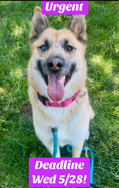 URGENT -DEADLINE FOR ADOPTION OR RESCUE WEDNESDAY 5/28, 5:00PMLovable Lani (A878365) is a 1-year-old spayed German Shepherd/Siberian Husky mix with a striking tan coat and a foxy, floofy look that really turns heads! At just 40 lbs, she’s a petite pup with a big personality—and even bigger energy. Lani’s had a few stops on her journey so far, but she’s still holding out for the right match! Her first home found her energy overwhelming, and in her second, she showed some prey drive toward cats and smaller dogs. Out on walks, Lani can be barky and reactive around other dogs, but she’s been working on her leash manners using a Halti-type leash and showing progress. She’s smart, knows ‘sit’, ‘down’ & ‘shake’. She is very food-motivated, and eager to please—qualities that make her a great candidate for continued training! She is also a playful girl who loves playing with stuffed toys and splashing in the kiddie pool, and enjoys pets and affection from her people. Lani’s participated in shelter playgroups, but she’s very particular about her canine friends and may do best as either an only dog or with a well-matched companion. With structure, consistency, and plenty of playtime, Lani will shine! She’s young, enthusiastic, and ready to thrive in a home that can match her energy and meet her needs. Third time’s the charm—could you be the one to give Lani her fresh start? Check her out in the videos below:To meet me, visit the Bradshaw Animal Shelter Tuesday-Sunday, Noon – 5:00 pm, Wednesdays, Noon – 6:00 pm. All adoptions are on a first-come, first-served basis. To help expedite the meet and greet process, please make note of my Animal ID number, and those of other dogs you might be interested in meeting. Be sure to bring your ID with you, too. We are located at 3839 Bradshaw Road, Sacramento. I look forward to getting to know you!