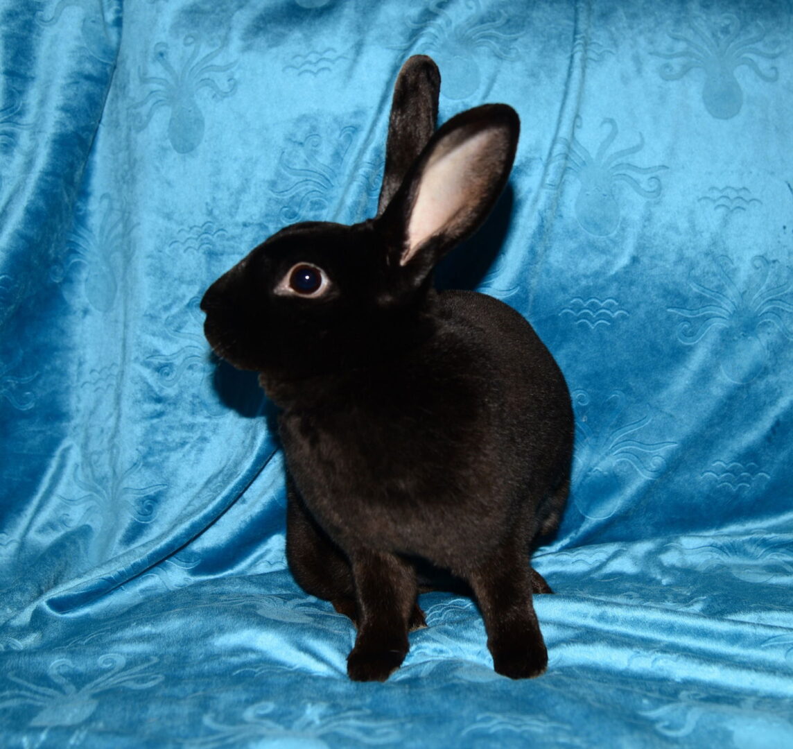 We have MANY more bunnies that have not yet been listed. Please fill out an application on our website www.morabbit.org OR call us at 314-995-1457 and leave a message. We will call you back to schedule a visit to our adoption center, The Bunny House, in Fenton, Missouri. LaRoe is a stunning black Rex rabbit with the signature velvet-soft coat for which her breed is known. LaRoe is a friendly and affectionate bun who loves gentle attention and spending time with her humans. She enjoys being pet, especially along her back and cheeks, and will happily settle in beside you for quiet company. While she’s loving and social, she can be sensitive to fast movements or loud environments, so she’s looking for a calm, adult-only home where she can truly relax and be herself. She thrives in a spacious indoor setup with soft flooring and cozy spots to lounge. LaRoe appreciates enrichment like cardboard tunnels, willow balls, and places to hide and explore during her playtime. LaRoe is spayed, litterbox trained, and in excellent health. She is ready for her forever home.Our bunnies are available for adoption in person by appointment at our adoption center in Fenton, MO, or you can meet a few bunnies and get some great information at the following Petsmart store locations and times: Due to COVID-19 we are not in Petsmart stores at this time. Please visit us at www.morabbit.org to complete an application or call 314-995-1457.