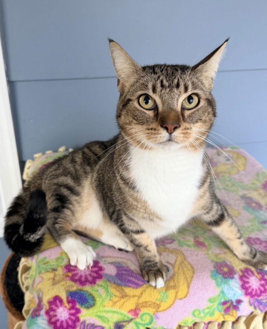See Laverne’s HomepageGo to our official websiteMeet Laverne — the sweetest hug-giver around. The moment you step near her, Laverne reaches out with gentle paws, eager to rest them on your shoulders and lean in for a big, heart-melting hug. It’s impossible not to smile when she wraps her little “arms” around your neck in her signature embrace. Laverne is an exceptionally loving and affectionate girl with a beautifully calm, grounding presence. She brings a sense of serenity wherever she is, making her the perfect companion for anyone seeking a gentle, devoted friend. Always ready for a cuddle, she’ll happily curl up with you, offering quiet comfort and unwavering companionship. Her striking green eyes shimmer against the unique marbling of her tabby coat, making her as gorgeous as she is sweet. If you’re looking for a peaceful, affectionate, and deeply loyal feline friend, Laverne is ready to bring her warm heart—and her hugs—into your home.