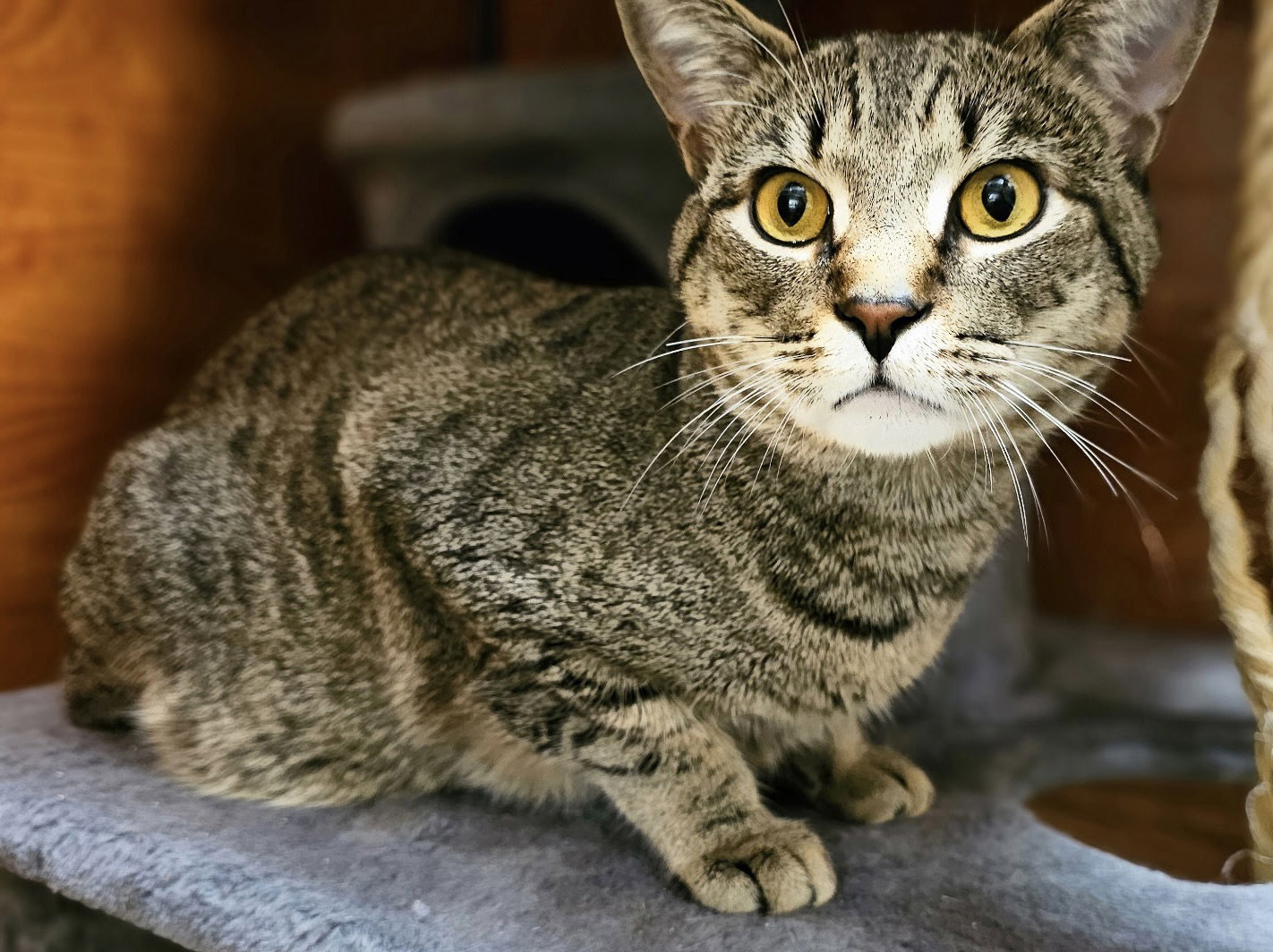 Meet Lee! Lee is a handsome 2-year-old brown tabby with a big heart and an even bigger love for attention. The camera may have added a few extra pounds in some pictures, but don’t be fooled, Lee is actually a lean, athletic boy under those stripes and spots! Lee is the definition of sweet and affectionate. He loves being around people and will happily give you gentle head bonks to politely request more pets. If you’re sitting nearby, there’s a good chance Lee will wander over to say hello and soak up some affection. He also loves his toys! He has an easygoing personality that would make him a great fit for many homes. Lee gets along well with other cats and kids, making him a wonderful all-around family companion. He would prefer a home without dogs. Lee also has an adorable little quirk: before eating, he sometimes tries to “bury” his food like a tiny wilderness survival expert. It’s a hilarious habit, and we’ve included a video on his profile so you can see this funny routine for yourself. If you’re looking for a friendly, loving cat with a dash of personality, Lee might just be your perfect match. Adoption fee: $200, includes first 2 FVRCP vaccines, sterilized, dewormed, flea preventative, microchip If you are interested in adopting, please fill out an application and a representative will get back to you shortly to answer any questions you may have. The adoption policies and applications can be found at the following links: https://fancycats.org/adopt-a-cat and https://fancycats.org/adopt-a-dog. Email us at adoption@fancycats.org for general questions about our rescued cats. Email us at dogadoptions@fancycats.org for general questions about our rescued dogs. See our calendar of adoption events at https://fancycats.org/(scroll towards bottom) You can save animals like this one by becoming a foster! Fosters are like bridges between high kill shelters and forever homes. We need fosters so that we can save cats and dogs before they are euthanized at the shelters. If you are interested in becoming a foster, please visit: https://fancycats.org/volunteer