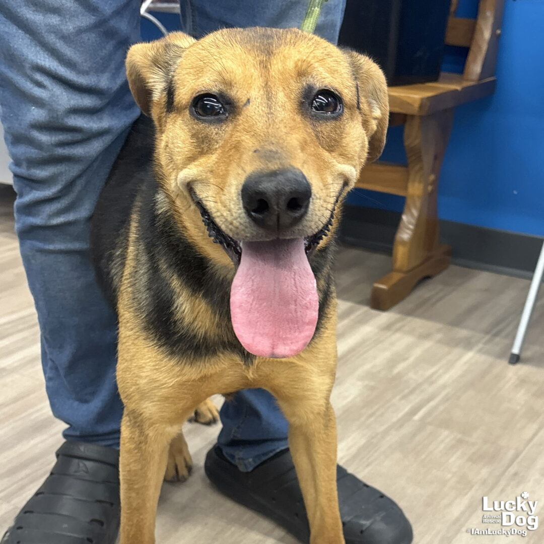 happy young boy ready to play! LEO NEEDS A FOSTER OR FOREVER HOME!!!! Name: Leo Best Guess for Breed: Shepherd and lab mix Best Guess for Age: 1.5 years as of January 2025 SEX: Male Approximate Weight: 43 lbs Gets Along With: Other dogs! We haven’t seen him with kids or cats but he can be tested if you have them. Currently Living at: South Carolina shelter; needs a foster or forever home in the DC area to get up here. Leo is Looking For: His forever family! This sweetie landed in the shelter through no fault of his own and he’s eager to once again have his own humans for long sniffy walks, romps in parks, and all the adventures they can dream up. Making new pup pals along the way would be great too. And quality kibble and a cushy dog bed are on his wish list as well. In exchange, he promises adoring gazes and all the love and loyalty in him. What do you say? Is this happy young boy the one you see by your side? What My Foster Says About Me: We will update this once he has arrived in the DC area and spent some time with his foster Lucky Dog cannot guarantee any dog is housebroken. All of our dogs are working on their crate training. TO ADOPT: The adoption fee for this dog is $460, which includes the cost of routine vetting, including vaccinations and spay/neuter. If you are interested in adopting, please complete the Adoption Questionnaire online at bit.ly/adoptaluckydog . Lucky Dog Animal Rescue does our best to provide accurate information about the dogs we have for adoption. That said, we cannot make any guarantees about age, breed or temperament. Thank you for contacting Lucky Dog Animal Rescue and helping to save a life! Please visit us online at www.luckydoganimalrescue.org . BE A FOSTER!!! Fosters make it possible for Lucky Dog Animal Rescue to save and care for homeless and abandoned dogs! To learn about fostering, please contact fostering@luckydoganimalrescue.org! BE A SPONSOR!!!! Sponsors help Lucky Dog support the many dogs we save. To learn more about sponsorship, please contact info@luckydoganimalrescue.org !