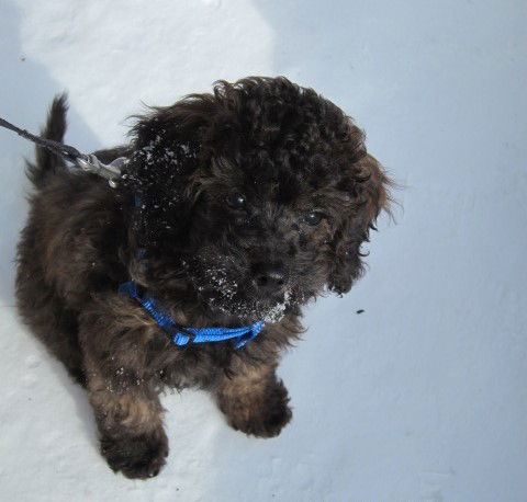 He was a surrender due to a prolapsed rectum surgery that was unaffordable. The surgery has now been done and he has recovered well Leo Puppy poodle/maltese 14 wks old, brindle, male This little bundle of joy loves people. He can be very independent but cautious with new sights and sounds. He is extremely smart, silly, playful with boundless puppy energy. He crates well. Sleeps through most nights with an early rise to let you know he wants to start his day. Still a little nervous going for car rides … enjoys them more when a few treats are included. Leo loves other dogs. He could be a little overwhelming for an intolerant mature/aged dog but would do well with a playful brother/sister. He’s looking for a perfect family ready for fun, zoomies, adventures, and a lot of puppy kisses and cuddles. He is 80 % housetrained Loves his toys and playing fetch … he is a quick learner and knows to sit for a treat when asked. He has aced going up stairs. Leo walks well on a leash. He will need a fenced, secure yard