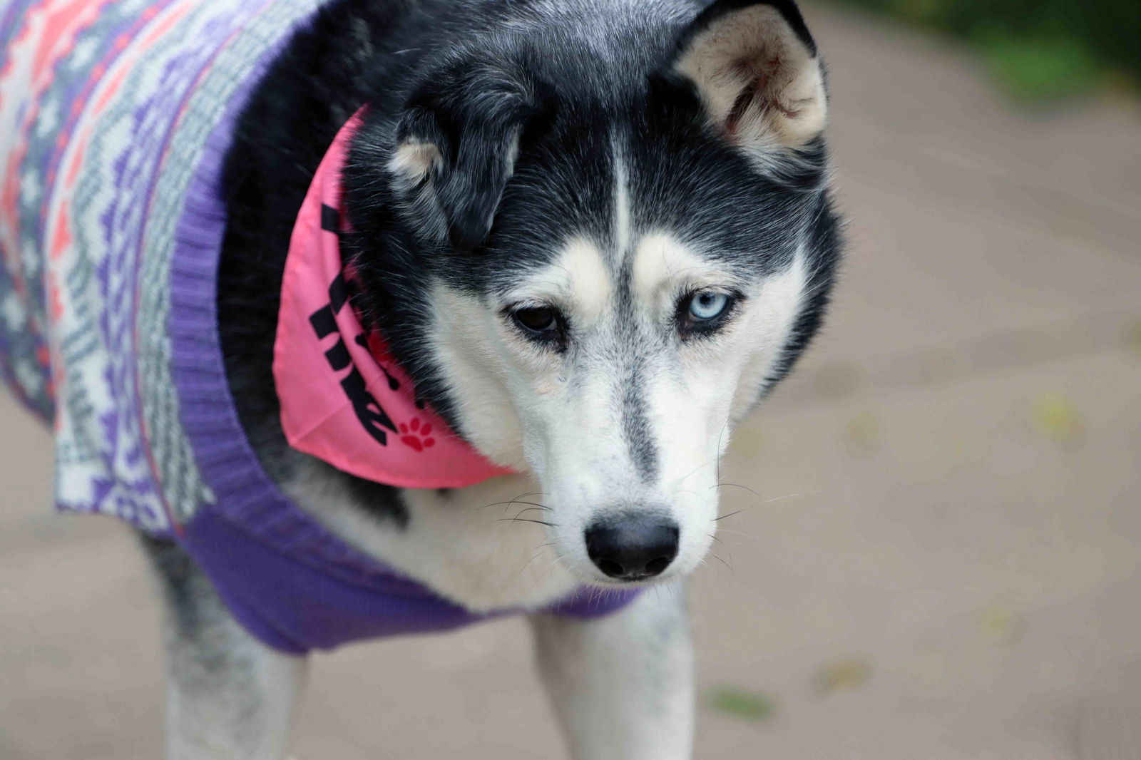 Leona is a very sweet and gentle girl, around 4-5 years old and weighing in at 50 lbs. With her stunning bi-eyes (one blue, one brown) and adorable quirky ear, she's as beautiful as she is loving. Leona is treat-motivated (and takes them oh-so-gently!) She knows basic commands, is fully potty trained and has wonderful manners. She also loves car rides and walks beautifully on a leash. A truly special dog ready for her forever home.