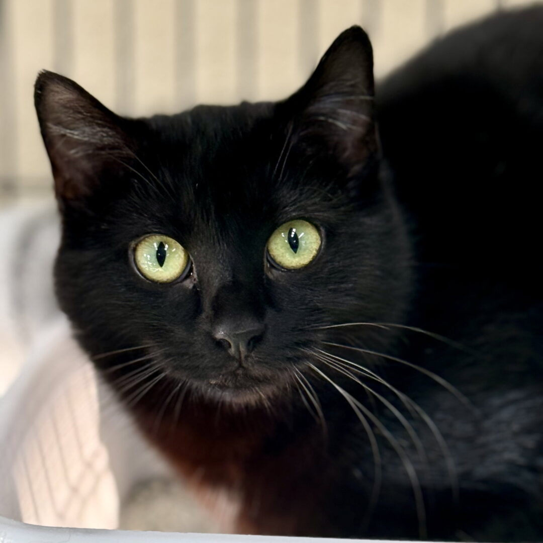 See Leslie’s HomepageGo to our official websiteHi… I’m Leslie I’m a 9-month-old all-black beauty with big, curious eyes that are always watching the world. I was found outside and I’m still figuring out this whole “indoor life with people” thing. I’m a bit on the semi-feral side, but I’m learning—especially when food is involved. Right now, I’ll let you pet me while I’m eating, which is a pretty big step for me.I’m going to need a patient, understanding home where I can move at my own pace and build trust slowly. With time, kindness, and lots of yummy meals, I just might surprise you. If you believe in quiet progress and gentle hearts, I could be your girl. If you are interested in adopting, applications can be found on our website www.ahimsahaven.org. Meet and greets are with an approved application by appointment only. As always, cats that are ready to be adopted are spayed/neutered, have age appropriate shots, are micro-chipped, dewormed/deflead, and FEL/FIV tested.