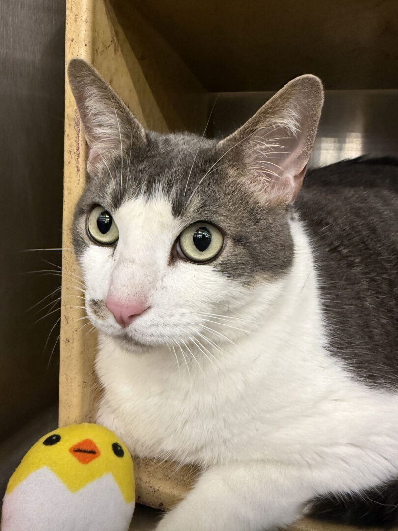 Est DOB 1/28/2020 Current weight ~ 18 lbs $175 adoption fee includes vaccinations, Feline Leukemia/FIV test, and spay/neuter surgery.Like us on Facebook – search Mutts & Meows – and help even more pets find loving homes.
