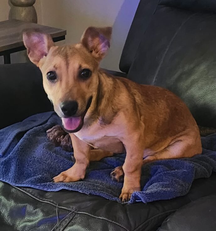 Apply to Adopt Me! Lil Tillie is a 7-month-old, 15lb., happy hearted, tail wagging ball of energy that loves everyone she meets! We are not sure how big she will get, but we are guessing smaller to medium size. This dachshund mix loves all kinds of toys and playing with other dogs. She doesn't seem to mind if they are large or small (in her mind she's big stuff). She's still working on potty training and will use pee pads. She sleeps through the night in her puppy pen. Leash training is still a work in progress, but seems to enjoy car rides. She is not a big barker, but does chime in with other dogs with her big bark if they are voice. Because she's young and energetic with typical puppy behavior, Tillie will thrive in a home where exercise, positive training along with puppy classes, and lots of love are made a priority. Since she is a high-energy puppy, we would love for her to have a fenced yard to run and play in. A bonus would be another playful dog in the home; if the home does not have that, she will need continued and ongoing socialization with other dogs. She does well with kids, and although her puppy nipping is getting better, young kids may find her to be too much. If you believe you have the perfect active home for Lil Tillie, complete an app and tell us more about your family.