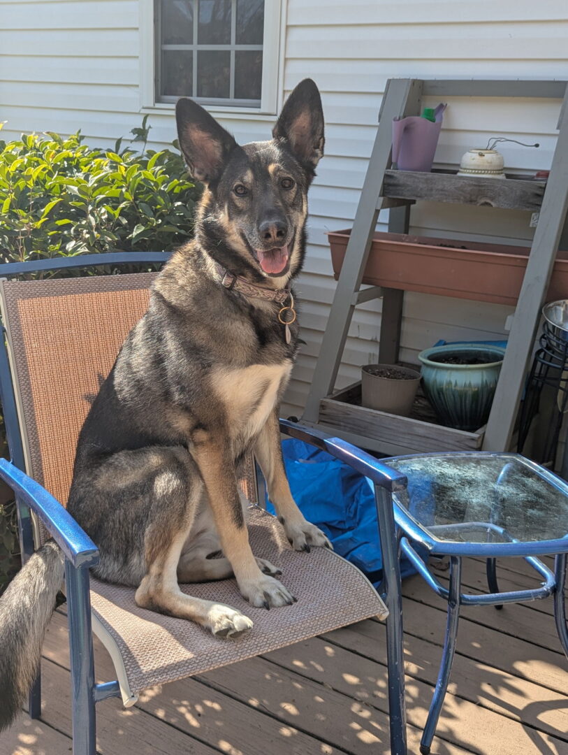 If you're interested in adopting any SGSR dog, please read about our Adoption Process and fill out an Adoption Application. Visit our website for more information, including Frequently Asked Questions. Lily is a 4 year old, lovely , sweet, affectionate and playful girl. She loves her person and people best. Lily does well with other more submissive dogs and dog friendly cats. Lily is a typical female…dominant not to be taken as aggressive. Lily loves to play. When she gets bored she may decide chasing her cat friends is fun. She pins them down but has not hurt them. Lily is house and crate trained. She has free rein in the house and is only kenneled for feeding. Lily is very possessive of her food, only with other animals. She likes to hang out in her crate on own sometimes. Lily is submissive to people and just wants all the love and attention she can get. She enjoyed being brushed, I can cut her nails check her teeth and clean her ears, no problem. Lily walks ok on a leash. She does need a martingale collar at all times as she is very good a wiggling out of a traditional collar and some harnesses. I’ve also had success with a gentle leader. She will fight it a bit to get out of it but doesn’t succeed and will go about her walk. Lily loves a car ride and exploring new places! She loves sitting in a chair, like a person, watching squirrels and birds. She can do that for hours! No barking or chasing, just watching. She Is a quiet girl and really only barks when someone walks on the road. Even walking, Lily doesn’t pull to chase squirrels. Lily is a super snuggler and loves to curl up on a lap and sleep by your feet at night. Lily loves attention but is also content with some time to herself. Lily is also good with respectful kids. She is the best girl. Lily is being fostered in Fuquay Varina, North Carolina. If you are interested in meeting Lily, please go to our website and fill out an adoption application. Www.southeastgermanshepherdrescue.com Our adoption process consists of a telephone interview, a call to your veterinarian and a home visit. If you have any questions about the adoption process please contact sgsrtreasurer@gmail.com .