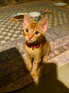 I am very friendly and will run up to my foster mom as soon as she walks in the room. My foster family calls me a “little lion” because if I want attention I will yell instead of meowing. However, my purr is even bigger than my yell. I know what I want and when I want it, which is now. I am very vocal and my foster family always knows it’s me yelling when they hear me from another room. I love attention and cuddles, whether it is from strangers or my foster family. If my foster mom is on the couch, I will get on her shoulder and nestle in her hair or lay in her arms. I get along great with and frequently cuddle my foster mom’s 15 year old cat, and am okay with, if a little distrustful of, my foster family’s dog. True to my name, my orange coat is mostly solid except for my slightly stripey legs. For more information & an online application go to https://www.cathouseonthekings.com/adoption/cat.php?id=27160&ts=1761721409&src=rg