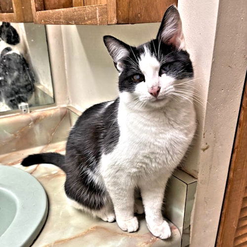Little Buddy is a neutered male short haired tuxedo with lots of white, born on February 1, 2024. He is affectionate and attentive to his people! Little Buddy has cloudy eyes because of scars on his corneas but we are hoping some of the Cloudiness will clear up as we are using special drops for them. In the meantime, this boy would make you such a wonderful companion and that’s why his name is Little Buddy. The adoption fee is $25. This covers the cost of spay/neuter, PVR, Rabies, flea, tick, ear mite and worm treatment. To adopt, you need to first fill out an application. Go to: https://rutherfordcountyhumanesociety.org/cat-adoption-application/ We are located in Western North Carolina. Optional transport is weekly. After your application is approved, we will contact you regarding cost and delivery if you so desire.
