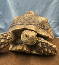 Hello friends, I was found as a stray in Salinas. I am still small at the moment. While I may seem like a big tortoise now I still have a long ways to grow. Sulcatas can grow up to 150lb as adults and are very long lived! I require a home that can accommodate my everchanging size. If you are interested in adopting or want more infromation about Sulcata care, please visit www.spcamc.org/exotics to fill out an adoption application. Visite www.spcamc.org/exotics para completar una solicitud de adopción.