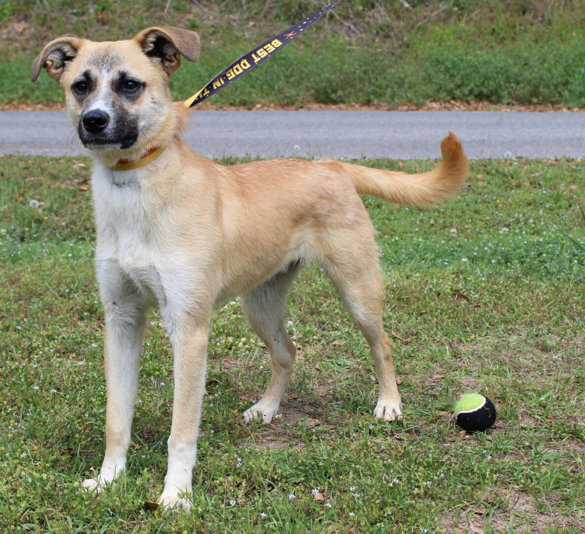 Little Jack is a 7-month-old male Shepherd mix who has already been neutered. This handsome fellow is tan with white markings; and he has black markings on his face. He will be a medium sized adult dog who will probably weigh 40-50 pounds. Little Jack is a typical precious young dog! He is such a sweet boy who is active and playful. He would be great with children and other dogs. You can see by his pictures he loves a toy–especially a ball. All he needs is someone to throw it for him for a good time! Little Jack is ready to start life with his own family–could it be yours?Dog/puppy adoption fees are $120. Cat/kitten adoption fees are $75. All pets will be spayed/neutered before adoption; or you will be given a discount spay/neuter certificate to be used at participating vet clinics to help with the cost of spay/neuter. Our adoption fees cover a microchip, microchip registration, deworming, vaccinations (as age and law requires), and a courtesy vet exam at participating offices. Unless otherwise indicated under ‘special needs’ our dogs have screened heart worm negative.