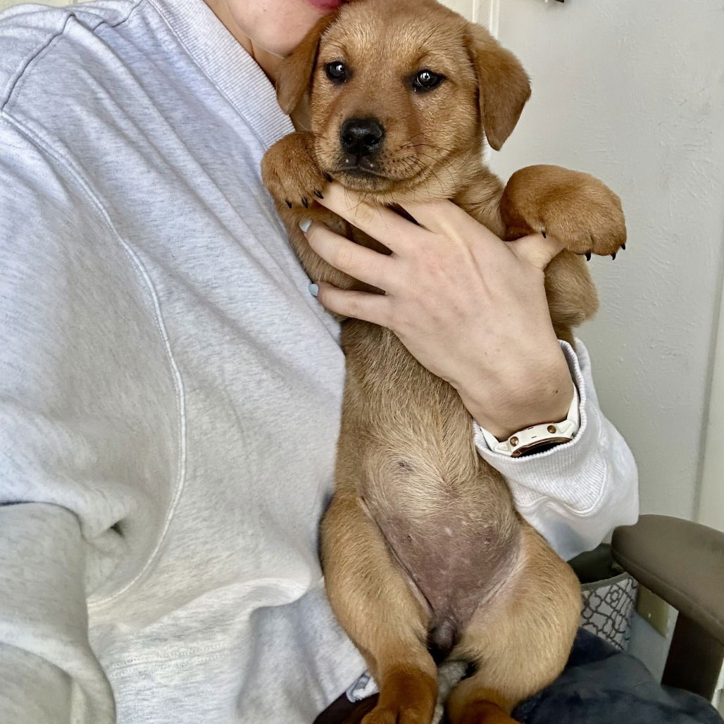 About Little Nell (we call her Nellie) 9 weeks year old Female Dog Social skills: Good with dogs, Other or untested Comments: Nellie is a happy and curious puppy girl! She loves to try and initiate play with her foster brothers (both of which are 50+ pound boys). She’s untested with cats or kids but would likely be able to easily integrate and learn based on her age Training Skills: Crate trained, Potty trained/litter box trained, Too young to walk on leash at the moment, but crate training and potty training History and background: Nellie ended up at Mesquite Animal Services when an officer found her and her 8 (!!!) brothers and sisters on the street. Having puppy fever, I coordinated with Jackie Babb to pick up one of the little babies and foster them for DPA. I had my pick of the litter and Nellie drew my attention right away as she was only one of two girls and the runt of the litter. Activity level: Puppy energy – play, eat, poop, sleep, repeat! Comments: As a small little puppy Nellie easily tires herself out by playing/jumping around with toys. She’s inquisitive and, like any usual puppy, wants to put her mouth on anything and everything so she does need constant supervision. Play behavior: Nellie is still growing her confidence and building her playstyle! She’s generally pretty gentle and enjoys playing with stuffy toys and Nylabones, but she also loves jumping at her foster brothers and biting on their tails to get them to pay attention to her. She’s a social girl and loves to be apart of the ‘pack’ Love language: Professional human cuddler *Very snuggly Favorite treats and toys: Nellie hasn’t met a treat or a toy she doesn’t like! Her favorite treat at this point seems to be yogurt or a stuffed kong, and her toy of choice is a furry stuffy Routine and ideal home: Nellie is still getting used to our house and has been an easy / adaptable addition :) She wakes up around 5:30-6:30a to go potty (she is a puppy after all), and then enjoys some play time before breakfast around 7a. After breakfast, she likes to play and is really inquisitive with discovering the new world around her. During the workday she sleeps nearby us and takes occasional potty breaks. We are also working on occasional crate training hours during the day and she is doing well with that. She has dinner at 5p, play time in the evening with her foster brothers, and goes to sleep in her crate around 9p. She isn’t yet able to go for walks, but I just know she’ll love to explore more of the big world! Best characteristics: She is tiny but mighty! While sometimes initially spooked by new surroundings, people, or places, she is an inquisitive and curious learner and is quickly gaining her confidence. In the 5 days that we have had her, she has grown so much. The best is when she’s really excited or proud of herself and gets the zoomies (they are so cute and short but she thinks she’s so fast) Descriptive adjectives: bright-eyed, playful, inquisitive Additional info: I have a pet that would be a good transport candidate (easily handled by strangers, no crate anxiety issues, etc.)