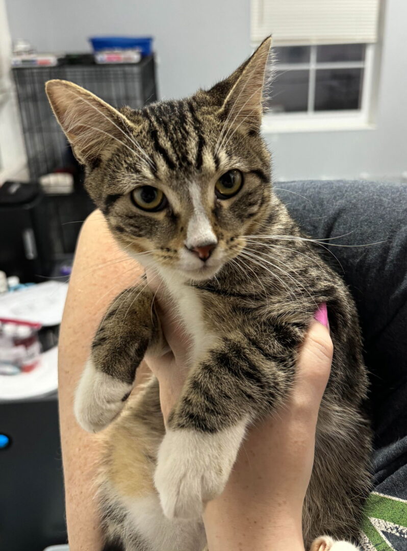 Hello! My name is Logan. I was very close to my momma Cat, and she did not like humans. I learned from her that I should hiss at and scratch humans. I’m still learning that humans are ok. Please be patient with me if I hiss and try to scratch. With lots of love, I am coming around but may revert to hissing or scratching when I meet new people at first. It’s just because I’m cautious and frightened. I enjoy wrestling with my siblings, but I also do well on my own. I really enjoy climbing and consider myself quite skilled at it. Food motivated- eat wet and dry- 2 5oz cans daily. Logan is a bit shy but comes around. Tigger is a social butterfly. Both love to run and climb. They love scratchy boards and rope. Tigger enjoys snuggles. The boys would absolutely thrive together but would still do well separately. If they are separated they would do best in a home with another cat/cats. Brothers Logan and Tigger are about 6 months old as of 11/07/2024 and are now playing in our West Chester PetSmart adoption center. Please stop by to meet them! Please submit our no-obligation application: https://forgottencats.org/adoption-application/. Thank you! (Foster: Ashley T.)