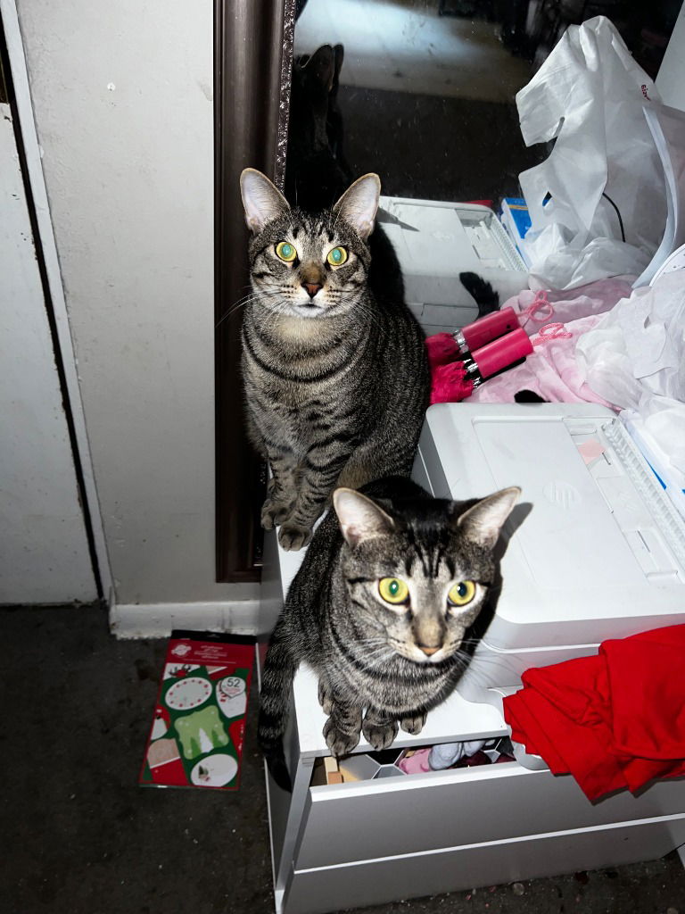 Lola (S2022258) and Louis (formerly Oscar S2022257).Lola and her brother Louis were adopted from Rescue Kitty as kittens two years ago, Unfortunately, through no fault of the cats, their owner must move, and she cannot take them with her. Lola and Louis are bonded since birth, so they must be adopted together. Lola is fairly small, very sweet, cuddly, and friendly. Brother Louis is super lovable and very friendly. Both Lola and Louis are vocal and high energy. Let them bring cuddles and fun to your home! Apply for this kitty: https://rescuekitty.org/adoption/adoption-application