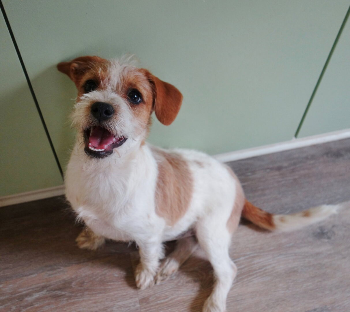 Meet Lottie! She is a roughly 3-4 month old female Terrier Mix. Lottie is sweet, sassy, and full of energy! This little lady is fearless, always taking the lead and always up for a new adventure. She is very playful and energetic, always playing with her siblings or toys! She loves her people and will sit and watch you endlessly until you give her attention; she has a great want to please and learn! Breed is a bit of a mystery since we do not know what the parents looked like, but we are guessing that there’s Jack Russell in there! She is the smallest puppy in the litter and as such will most likely be a small to medium sized dog somewhere between 20-40lbs full grown. She will be ready to go home at the end of March! She will be spayed, up to date on age appropriate vaccines, and microchipped. Her adoption fee is $350