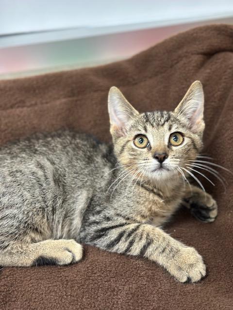 With gorgeously striped “sleeves”, perfectly outlined light jade green eyes, glistening whiskers, and an impish smile, lovable Louie is destined to be a heartthrob! His foster mom says he is super affectionate and extra playful, and has a big motorboat purr. His beautiful coat is smooth and soft as velvet, in handsome tones of classic grays highlighted by an adorable polka dot belly and rippling soft gray stripes! This dandy boy has five spunky siblings who all love to play and can always count on this brother to bring his housetiger curiosity and fearless spirit to every romp, exploration, and kitten adventure! When he’s ready to relax or snooze, it’s your lap or cuddling arms he’ll hope will welcome him. Could easy-to-love Louie be the darling delight in your forever family? For more information & an online application go to https://www.cathouseonthekings.com/adoption/cat.php?id=27044&ts=1761721409&src=rg