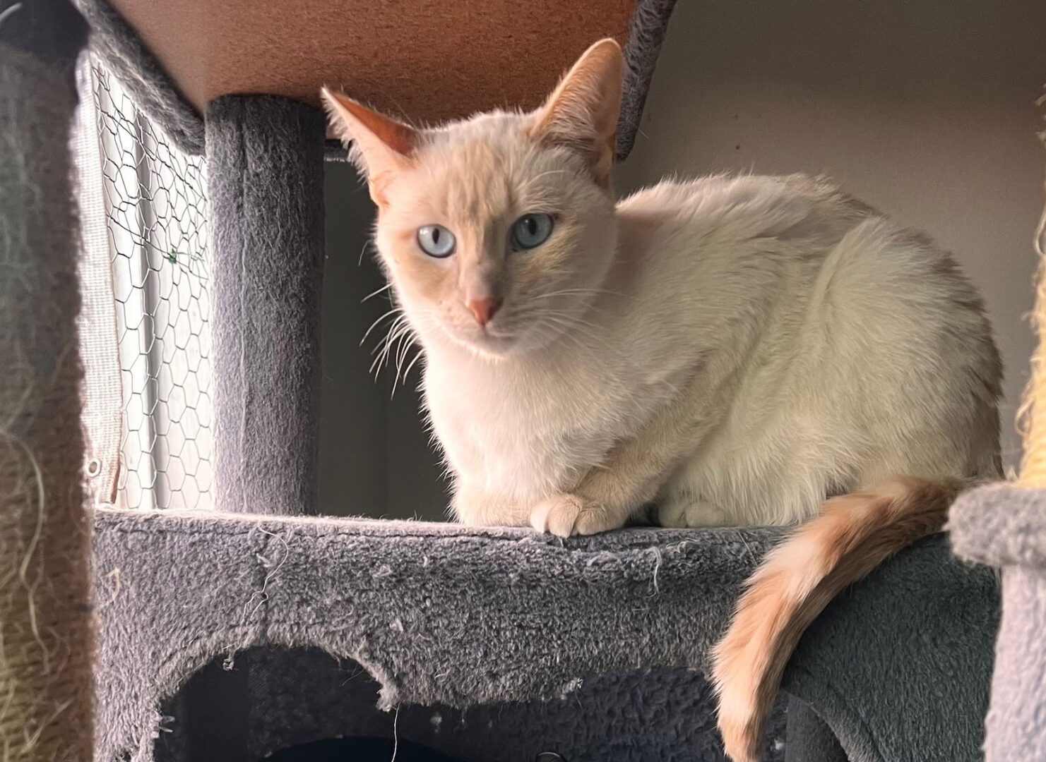 Hi, I'm Lucky! Yes, that's my name, but I really am lucky because I was rescued from living on the streets. I'm very shy but am coming out of my shell and getting more comfortable with people. I am bonded with my friend Miesha, a young black kitty — we're the perfect pair! I feel more confident when she's around, so we need to be adopted together. We would do best in a quiet, adult-only home, with no other cats; no dogs or children please. I was born in August 2024 and have been fixed. All Angus & Friends cats are healthy, fixed, vaccinated and microchipped prior to adoption. For more information about adopting us, please text Deborah at 510-909-4961 (or leave a message) or email her at angusnfriends@outlook.com.