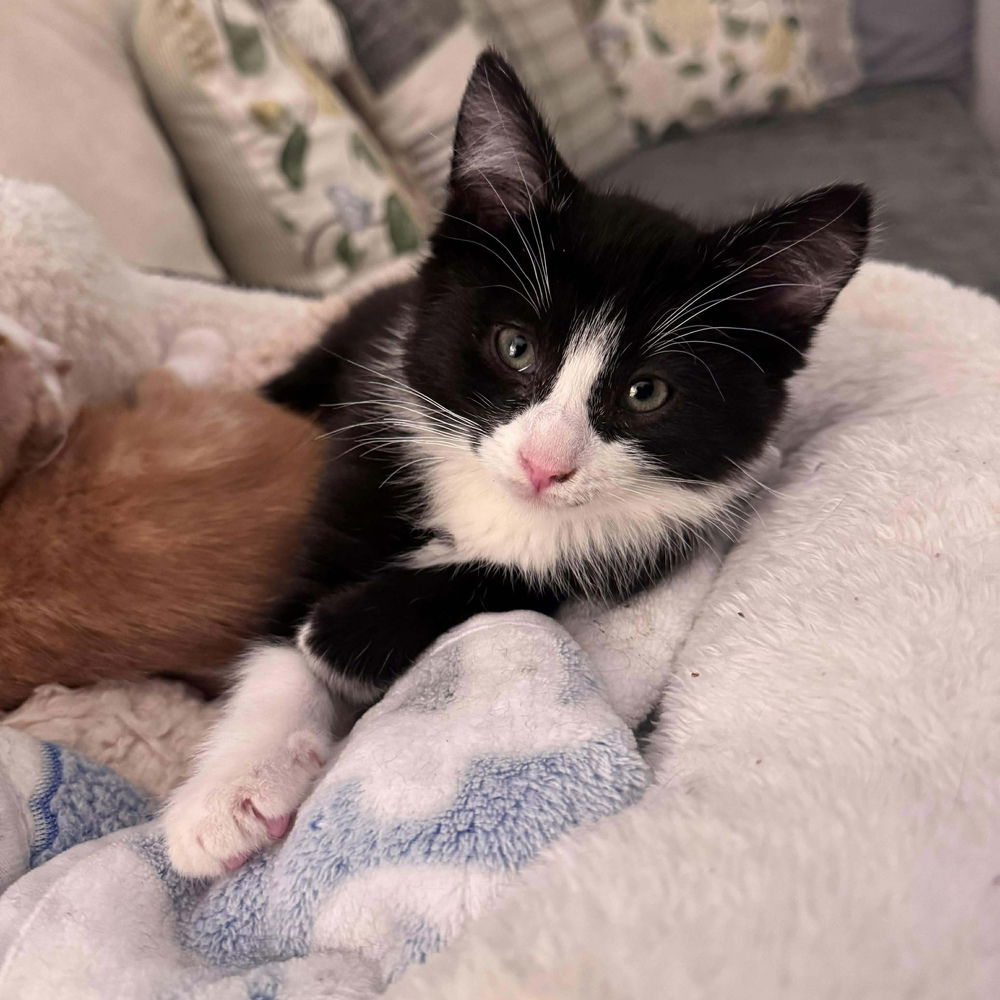 Meet Lucy — A Tiny, Tenderhearted Homebody Lucy is a calm, pint-sized little tuxedo baby who specializes in finding the coziest, quietest spots to curl up. When you do spot him, you’ll be rewarded with immediate purrs and a soft, squeaky meow to say hello. Despite his name, Lucy is, in fact, a boy. He was accidentally mistaken for a girl when he first came to his foster home from the shelter… and the name stuck! He is the adorable other half to his brother Ricky and together Lucy and Ricky make a precious tuxie duo! Lucy is the definition of a snuggle companion—his dream day involves being tucked into a soft blanket on your lap or at your side while you binge-watch your favorite shows. He’s the runt of his litter and adorably small (truly a little pipsqueak), with short legs, a stubby build, and an overwhelming desire to be babied as much as possible.Lucy would do well in just about any home, as he has met adult cats, large and small dogs, and children ages 4–15, and handled everyone beautifully. That said, his heart is happiest in a calmer household where he can relax, soak up affection, and enjoy his peaceful routine. He’s easygoing, loves being pet and held, and enjoys attention—even though he’s also content doing his own thing. He’s more laid-back than most kittens, so while he does play, it’s not his main personality trait. Think gentle soul, not chaotic kitten energy. Since he is still young, Lucy will need to be adopted into a home with another kitty to socialize with. He would be thrilled to be adopted with his brother Ricky, whom he absolutely loves, they are inseperable! Even when introduced to other foster kittens, Lucy and Ricky seek each other out and sleep cuddled together every night. Ricky brings out Lucy’s playful side and helps him feel brave, and Ricky truly thrives with his brother by his side. Their foster would absolutely love to see them adopted together.When Lucy’s nap battery is fully charged, he enjoys climbing his cat tower, batting at wand toys, and wrestling with his brother—especially toys that don’t require too much cardio (a very relatable preference). One of Lucy’s funniest traits is his superpower: invisibility. Between his tiny size and quiet nature, it’s a daily game of “Where did Lucy go?”—and the answer is usually that he’s been in the same room the whole time, just expertly hidden. A collar with a bell is highly recommended for this little Houdini.Sweet, gentle, adorable, and endlessly lovable, Lucy is a little guy with a big heart who’s ready to be someone’s cozy, devoted companion—especially if his brother Ricky can come along too. Apply now to meet Lucy and Ricky! They can't wait to meet you. WE DO NOT HAVE A PHYSICAL LOCATION AS WE ARE A FOSTER-BASED ORGANIZATION. PLEASE SUBMIT AN APPLICATION TO BE IMMEDIATELY CONNECTED TO A SCREENER.Apply at online application (catsfff.org/adopt)View all of our adoptable cats here (catsfff.org/cats)Our adoption fees are listed here (catsfff.org/adoption-fees)