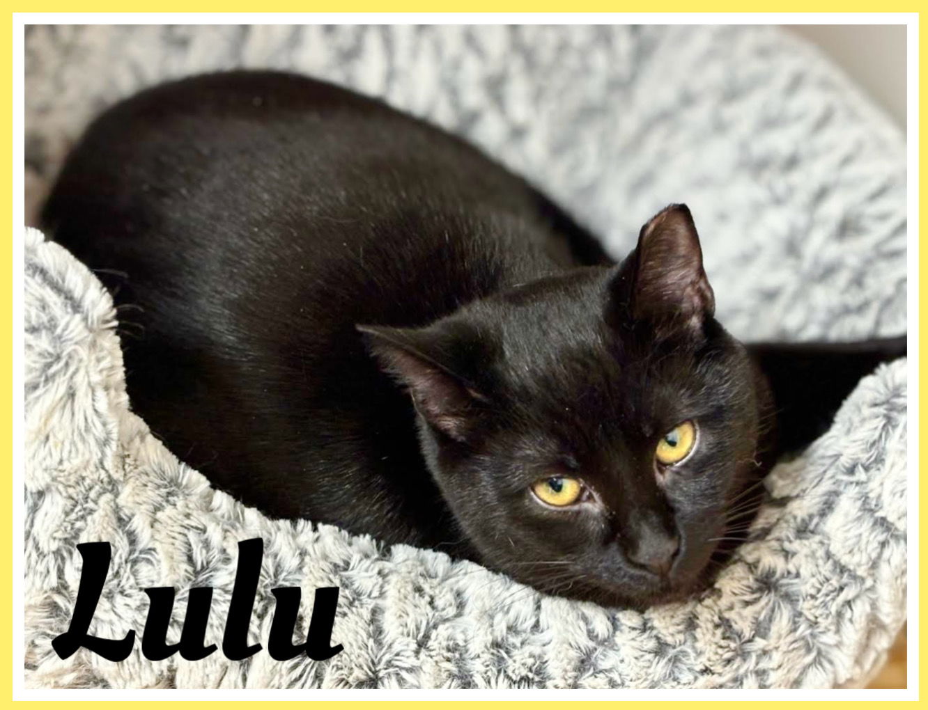 Will you please foster me? Cat- Friendly!! Meet Lulu an all-black gal who absolutely adores other cats. Lulu has been with us since she was 3 months old and we estimate her age to be 1.5 years old as of March 2025. You can often find her snuggling or sharing her food with her feline friends, which is just adorable. We are not exaggerating when we say she has made friends with every kitty in the shelter! When it comes to people, while she will allow you to approach, Lulu much prefers to be admired from a short distance. Lately, this gal has shown a more welcoming side, allowing her caretakers to pet and brush her, which she adores. S he can be a little rattled by sudden movements or loud noises, so a calm, adult-only household would be her preferred living arrangement. Ideally, her person will be patient and continue to work with her towards becoming more socialized. When it comes to playtime, Lulu excels! She loves to bat mice around and chase fluffy wands. What we love the most is watching her with her water! She's often splashing around in her bowls and making little pools to play and, we only assume, use to look at her reflection. She'd probably go wild with a fountain! Once upon a time, Lulu was fine with her foster's 2 large dogs (a lab/ rot and malamute/ shepherd). With proper introduction she may do well around other canines, but we cannot be sure since she has been in the shelter environment for most of her life. Lulu is playing in our Willow Grove Shelter. Please consider fostering: https://forgottencats.org/foster-a-cat/. Or, please submit a no-obligation application for a meet and greet or to adopt today: https://forgottencats.org/adoption-application/ . Thank you! (Foster: Willow Grove)