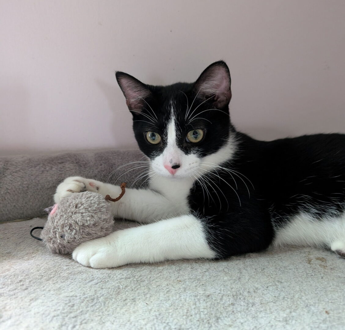 Lush is an 8-month old social butterfly with a huge personality. A bit shy at fist but give him 10 minutes and it's as if he has known you forever. Always ready for a play session or a cozy cuddle with you or his brother Rush. Whether it's chasing a feather toy, head butting for a petting session or helping with whatever you are doing Lush brings joy and laughter constantly. He loves human attention and is very bonded with his brother Rush. Lush is looking for a home with his brother where they can both be your sidekicks and your reason to smile everyday. Luch is neutered, combo tested negative for FELV/FIV, and microchipped. Are you ready to meet your new best friends?