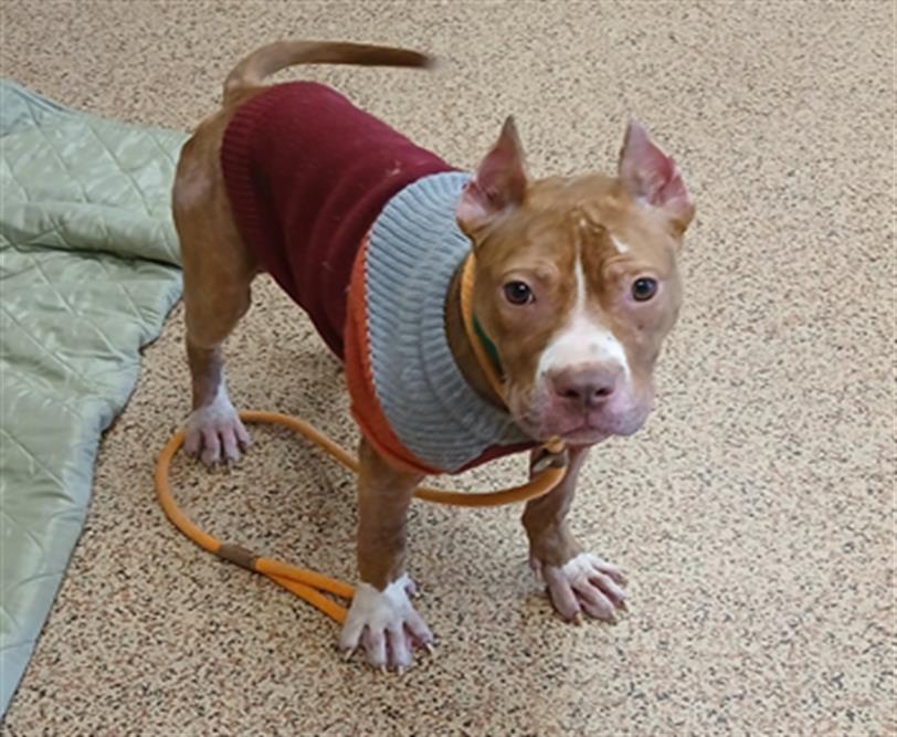 Lyla arrived at TJO a little worse for wear, but with no shortage of sweetness. She’s still currently working on gaining weight and fixing up some skin issues, but she’s a loveable gal who has more interest in people than toys, and loves getting to play with other dogs! She can be intense with her food, so it’s important that she’s left alone while she eats to avoid any unnecessary sense of conflict. OTHER PETS: Lyla got along with other dogs and invited play appropriately, but she doesn’t quite understand when other dogs aren’t interested in joining her. She can get overexcited, and that can be overwhelming for some dogs. Her best match would likely be another dog that can match her energy level and play style, while also being tolerant as she learns how to interact. [Likely (Must Meet First)] OWNER EXPERIENCE: Someone who has experience with dogs with skin issues that can be dedicated to maintaining Lyla’s health would be ideal in order to keep her comfortable throughout her life. [Some Experience] KIDS: Lyla can be mouthy when being scratched and is intense about her food. She would do best in a home with children that are old enough to respect her boundaries and allow her to approach when ready. [15+ (Must Meet First)] ACTIVITY LEVEL: Lyla is a sweet, wiggly girl who would be a great partner for walks around the block! While she loves hanging out with her people, it’s important for her to get both physical exercise and mental enrichment to make sure she doesn’t create unsafe entertainment. [Good Walking Buddy] VETERINARY CARE: Lyla arrived at TJO with an ear and skin infection that she’s still being treated for. It’s likely that her skin issues are the result of allergies, so it’s possible that she may need on-going medicated baths or a restricted diet to maintain her coat health. [Above Average] LEVEL OF TRAINING NEEDED: Lyla is still at the beginning of her positive reinforcement training journey, and will do best learning with someone who can offer both patience and support while she adjusts. Positive reinforcement training will help Lyla not only learn her basic cues, but also help her to feel more comfortable and confident in herself while bonding with her guardian! [Moderate] GROOMING: While Lyla has short fur, she may require medicated baths every so often to maintain her skin health. [Minimal]