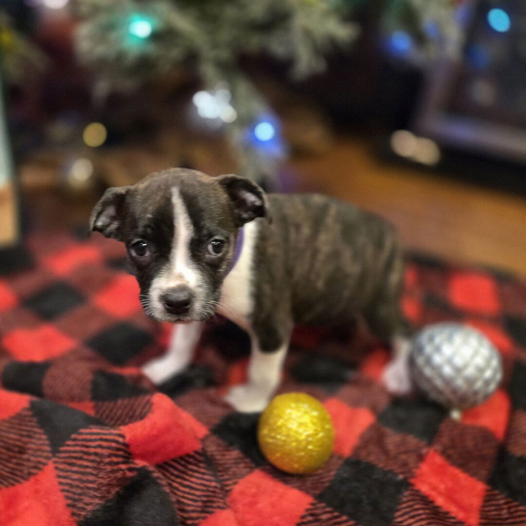 This litter was born to a Feist/Boston Terrier mother, who was chained to a dog house outside in the cold. The father is unknown. The owner would not give up the mother dog so are keeping her and getting her spayed. With temperatures dropping, it was far too cold for puppies this young to remain outdoors, so AFH took them in.Accuracy is not guaranteed; however, information provided is accurate to the best of our knowledge. For more information on the pet, please send an email to info@aforeverhome.org