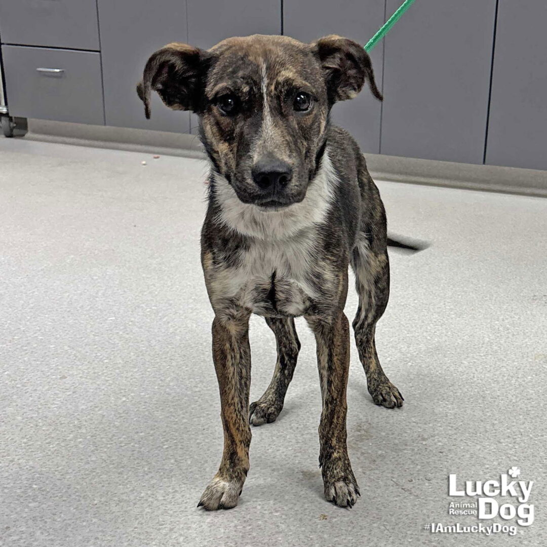 young girl ready to play! MABEL NEEDS A FOSTER OR FOREVER HOME!!!! Name: Mabel Best Guess for Breed: Heeler and lab mix Best Guess for Age: 6 months as of January 2026 SEX: Female Approximate Weight: 22 lbs as of 1/12/26 – is still growing! Gets Along With: Other dogs! We haven’t seen her with cats or kids but we are happy to discuss integration techniques with any potential adopters! Currently Living at: South Carolina shelter – needs a foster or forever home in the DC area to get up here. Mabel is Looking For: Her forever home! This sweetie is at the tail end of puppyhood, has all that awesome young-dog energy to burn, and she’s eager to get her own humans for that. Long sniffy walks, romps in parks, all the adventures they can dream up – yes, please! Making pup pals along the way is on her wish list as well, along with quality kibble and a cushy dog bed. And at the end of a fun day together – cuddles.But most of all she wants to know where she belongs, to be safe and loved. In exchange, she promises adoring gazes and loyal companionship for all her days. What do you say? Is Mabel the companion you have been seeking?What My Foster Says About Me: We will update this once this pup has spent time in foster care. Lucky Dog cannot guarantee any dog is housebroken. All of our dogs are working on their crate training. TO ADOPT: The adoption fee for this puppy is $485, which includes the cost of routine vetting, including vaccinations and spay/neuter. If you are interested in adopting, please complete the Adoption Questionnaire online at bit.ly/adoptaluckydog . Lucky Dog Animal Rescue does our best to provide accurate information about the dogs we have for adoption. That said, we cannot make any guarantees about age, breed or temperament. Thank you for contacting Lucky Dog Animal Rescue and helping to save a life! Please visit us online at www.luckydoganimalrescue.org . BE A FOSTER!!! Fosters make it possible for Lucky Dog Animal Rescue to save and care for homeless and abandoned dogs! To learn about fostering, please contact fostering@luckydoganimalrescue.org! BE A SPONSOR!!!! Sponsors help Lucky Dog support the many dogs we save. To learn more about sponsorship, please contact info@luckydoganimalrescue.org !