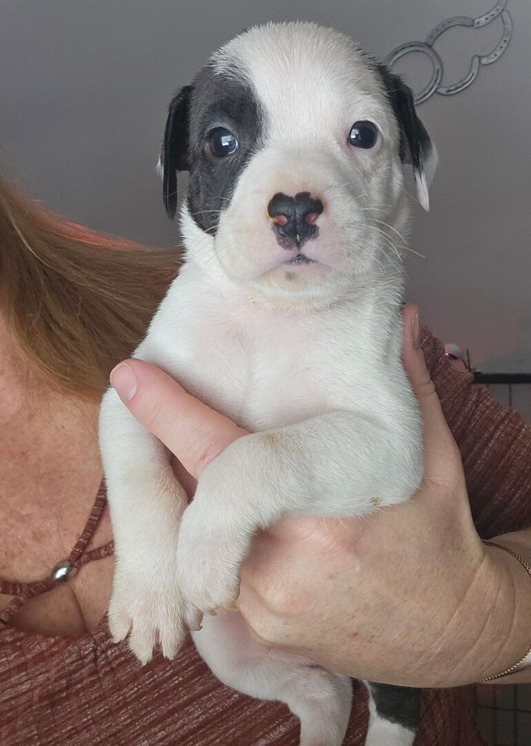 Sweet Maggie Moo came to our rescue from Texas. She was about ready to pop! Maggie delivered 14 sweet puppies on 11/26/2024. We believe Maggie is a Beagle / Pit mix, unsure of who Dad was (maybe a lab?). Angus is 1 of 14 adorable pups that will be ready for adoption on Jan 26st. Angus is super cute and sweet. He is good with people, children, other dogs, and cats! But he is just a baby and will need training. Apply to adopt MAGGIE'S ANGUS GCH at www.ehrdogs.org