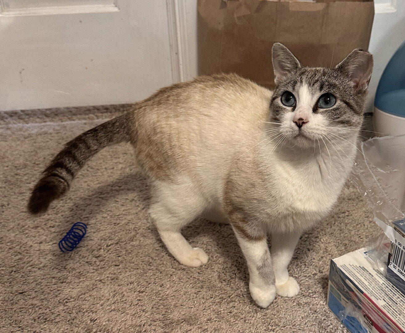 See Mama’s HomepageGo to our official websiteYou can fill out an adoption application online on our official website. Blue eyed lynx-point beauty Mama, is looking for her forever home where she can be loved and spoiled for the rest of her life! 2 year old Mama came to us with 2 of her kittens from an indoor/outdoor home, when her former owners needed to downsize. Mama is quick to purr, showing us she's ready to be a big cuddle bug with her forever family when she settles in. Mama is an observant and sweet lady who is just starting to learn how to play with toys – which is so cute!. Mama really enjoys wand toys and sneak attacking them from underneath a good hiding spot. Mama has been around other cats – her daughter from her first litter, Fin, and her kittens from her second litter, Acorn & Chestnut, are also with our rescue. There was also a dog in her previous home, but we're not sure how comfortable she was with them. Interested in adopting? Please complete a form at https://redemptionroadrescue.rescuegroups.org/forms/ If you are viewing this listing on PETFINDER there is often MORE INFO ON and MORE PICS OF the animal DIRECTLY ON OUR WEBSITE. http://redemptionroadrescue.rescuegroups.org *Adoption Fee for Mama is $310 + MN tax. redemptionroad.mn@gmail.com https://www.facebook.com/RedemptionRoadRescue Mama is fully vetted: Spayed, FVRCP/Distemper vaccinated, rabies vaccinated, feline luek/FIV tested negative, microchipped with lifetime chip registration, dewormed, negative PCR fecal test.