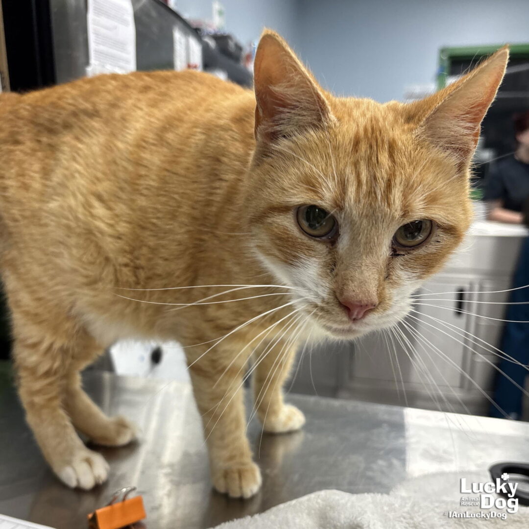 Please contact Brittny Parsells-Johnson (brittny.parsells-johnson@luckydoganimalrescue.org) for more information about this pet.Sweet Mama – looking for a forever home!MAMA NEEDS A FOREVER HOME! Name: Mama Best Guess for Breed: Domestic Short Hair Age: 6 years DOB: 3/16/19 SEX: Female Approximate Weight: 8lbs 4 oz Coloring: Orange and White Tabby Type of Hair: Short Gets Along With: With proper integration, Mama will likely get along with other cats, dogs and kids with an acclimation period. We’re happy to help with tips and tricks! Currently Living at: Shelter — Coming to the DC area soon! I am Looking For: My loving forever family! Hi! I’m Mama, and I am a cute little kitty! I won’t ask for much- just some love, cuddles and lots of toys so I can run and play and be my kitty self. What my Foster Says About Me: Coming soon! TO ADOPT: The adoption fee for adult cats is $200 ($350 for two cats adopted together). The adoption fee for a kitten (under 7 months old) is $220 ($380 for two kittens adopted together).If you are interested in adopting, please complete the Adoption Questionnaire online at bit.ly/adoptaluckycat. Lucky Dog Animal Rescue does our best to provide accurate information about the cats we have for adoption. That said, we cannot make any guarantees about age, breed or temperament. Thank you for contacting Lucky Dog Animal Rescue and helping to save a life! Please visit us online at www.luckydoganimalrescue.org . BE A FOSTER!!! Fosters make it possible for Lucky Dog Animal Rescue to save and care for homeless and abandoned dogs! To learn about fostering, please contact fostering@luckydoganimalrescue.org BE A SPONSOR!!!! Sponsors help Lucky Dog support the many dogs we save. To learn more about sponsorship, please contact info@luckydoganimalrescue.org !