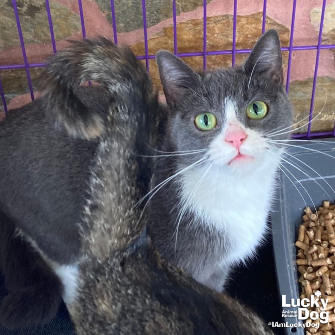 Please contact Lauren McCarty (laurenmc@luckydoganimalrescue.org) for more information about this pet.Beautiful 6yo Girl Looking For A Home!MAMA SOUR NEEDS A FOREVER HOME! Name: Mama Sour Best Guess for Breed: Domestic Short Hair Age: 6 years – Estimated DOB: 10/26/19 SEX: Female Approximate Weight: 5.3 lbs a/o 11/6 Coloring: Grey & White Type of Hair: Short Gets Along With: With proper integration, Mama Sour will likely get along with other cats, calm dogs and kids with an acclimation period. We’re happy to help with tips and tricks! Currently Living at: Check out our Lucky Cats on Instagram at the Meow Maison Cat Cafe Meow Maison Cat Cafe (1336 Wisconsin Ave NW, Washington, DC 20007). You can come visit me at Meow Maison Cat Cafe during the cafe’s operating hours! If you would like to visit the cafe, please make an appointment on their website (meomaison.com). If you want to adopt me, you will need to complete the adoption process through Lucky Dog Animal Rescue. I am Looking For: My loving forever family! Hi! I’m Mama Sour, and I am a beautiful kitty! I won’t ask for much- just some love, cuddles and lots of toys so I can run and play and be my sweet self. What My Foster Says About Me: Coming soon! TO ADOPT: The adoption fee for adult cats is $200 ($350 for two cats adopted together). The adoption fee for a kitten (under 7 months old) is $220 ($380 for two kittens adopted together).If you are interested in adopting, please complete the Adoption Questionnaire online at bit.ly/adoptaluckycat. Lucky Dog Animal Rescue does our best to provide accurate information about the cats we have for adoption. That said, we cannot make any guarantees about age, breed or temperament. Thank you for contacting Lucky Dog Animal Rescue and helping to save a life! Please visit us online at www.luckydoganimalrescue.org . BE A FOSTER!!! Fosters make it possible for Lucky Dog Animal Rescue to save and care for homeless and abandoned dogs! To learn about fostering, please contact fostering@luckydoganimalrescue.org BE A SPONSOR!!!! Sponsors help Lucky Dog support the many dogs we save. To learn more about sponsorship, please contact info@luckydoganimalrescue.org !